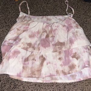 This tank top is a multi color top that consists of brown, pink and white. I pair it best with a cardigan. It’s got a lose fit on the stomach