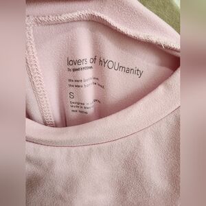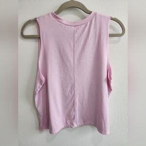 Light Pink Slightly Cropped Tank Top. Some fading from washing, but in great condition. Super soft stretchy material. Extra large sleeve holes.