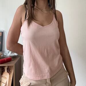 Keywords: pink tank top, v-neck tank, sleeveless top, casual tank top, basic tank top, summer top, layering tank, women's tank top, pink top, everyday tank, comfortable tank, cami top