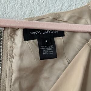 Pink Tartan, beige dress, V-neck, knee-length, cap sleeve, sheath dress, size 8, career dress, cocktail dress, women's fashion, designer dress, classic style, modern dress, office wear, special occasion, flattering, versatile, neutral color.