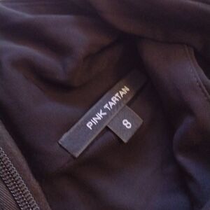 Pink Tartan black Draped Scarf Neck Jersey sheath dress. Excellent used condition no rips or stains. Little to no pilling. Size 8 please see measurements pictures to be sure of fit.