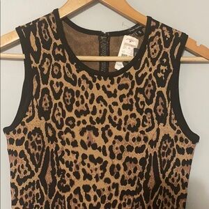 BNWT. This leopard print knit dress, $425, reflects Newport-Mimran’s elegant, feminine signature silhouettes and is part of the main Pink Tartan collection. Heavy knit stretch material. Zipper back. Flattering print and silhouette.
