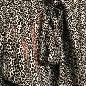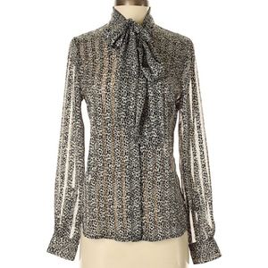 Pink Tartan Leopard Print Tie Neck Blouse Sz 0 XS