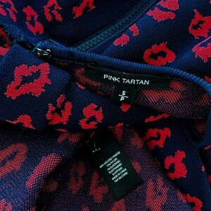 Pink Tartan Navy Blue Red Vibrant Stretch Knit Leopard Print Sweater Dress S