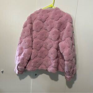Pink Teddy Jacket with Cropped Length and Collarless Design