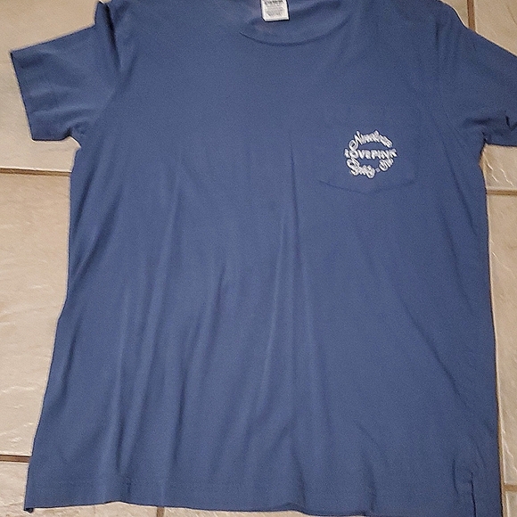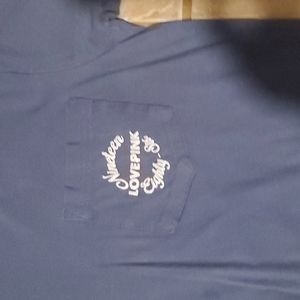 Gently used PINK BRAND TEE blue pocket on front took pics of front & back there are a fee watermark stains but not noticeable while wearing other than this great shape 💙