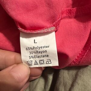 Pretty pink tee-shirt with a graphic that features Hearts and Love Always on the front. The shirt is s short sleeve and has a little stretch. Size L.