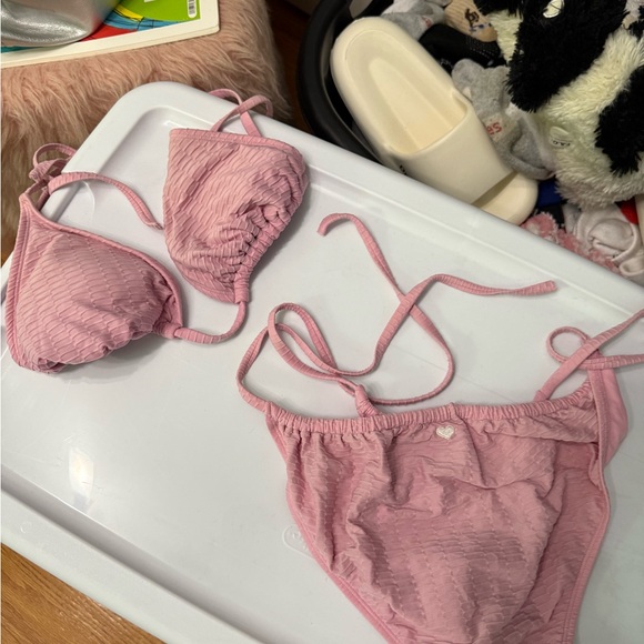 Pink Textured Bikini Set