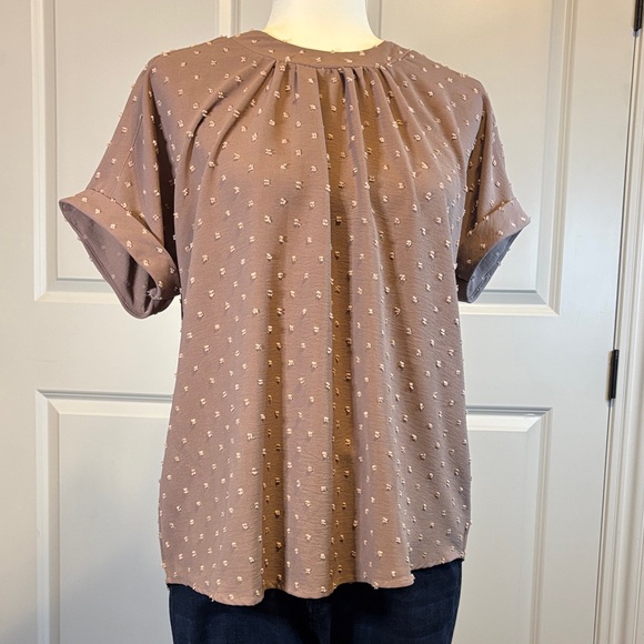 Chic dusty pink blouse with textured design. Ideal for casual outings. Good condition Size medium Pit-pit 22 Length 24