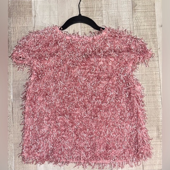 Stylish pink textured short sleeve top. Perfect for adding flair to any outfit.