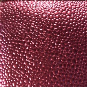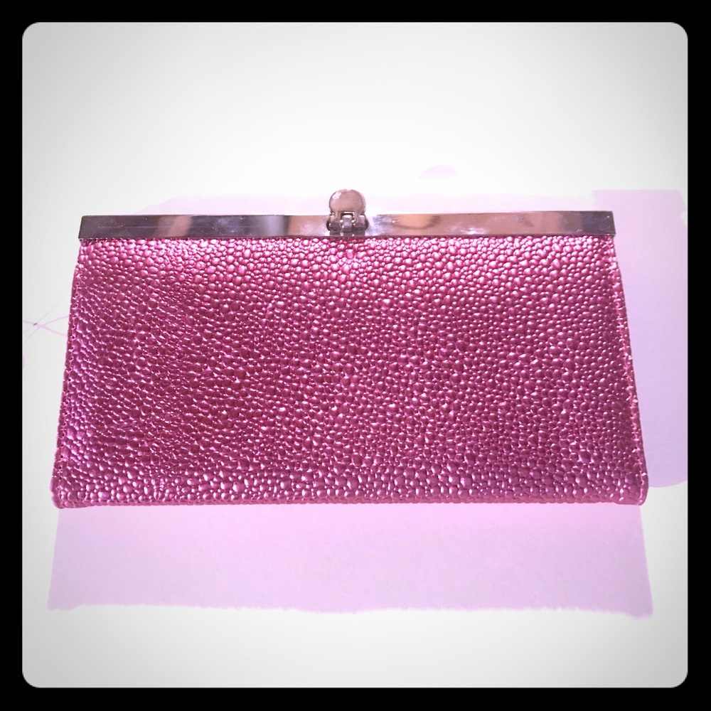 This pink accordion style clutch has a bubble textured exterior and black interior. Plenty of room for cards and cash. Would add a fun touch to any outfit. Can double as a wallet.