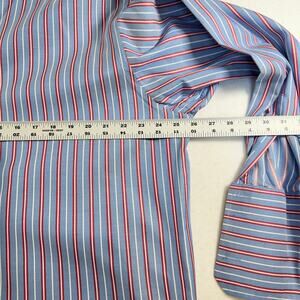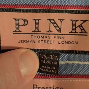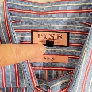 Pink Thomas Pink Prestige Button Shirt Men 17.5 35.5 FRENCH CUFF Blue Red Stripe
