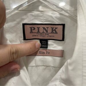 Pink Thomas Pink White Slim Fit Button Up Shirt 15 1/2