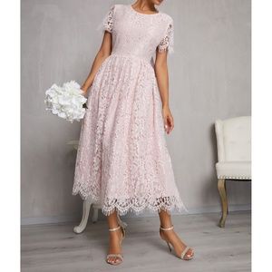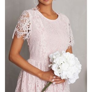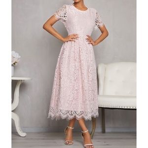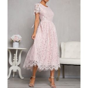Pink Tie Open Back Fit & Flare Lace Midi Dress