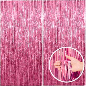 Pink Tinsel Backdrop 2 Pack Party Decorations Foil Fringe Birthday Photo Booth