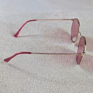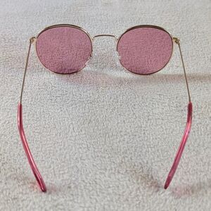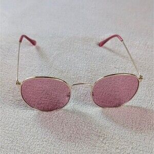 Pink Tinted Small Round Frame Sunglasses Unisex Gold UV Protected