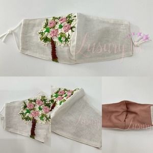 If wanted, please iron the silk layer of the mask in low heat and avoid embroidery details.