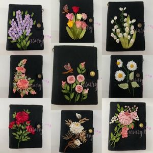 Pink Tiny Rose Embroidery Passport Wallet & Silk Mask, Wedding Gift, Versatile