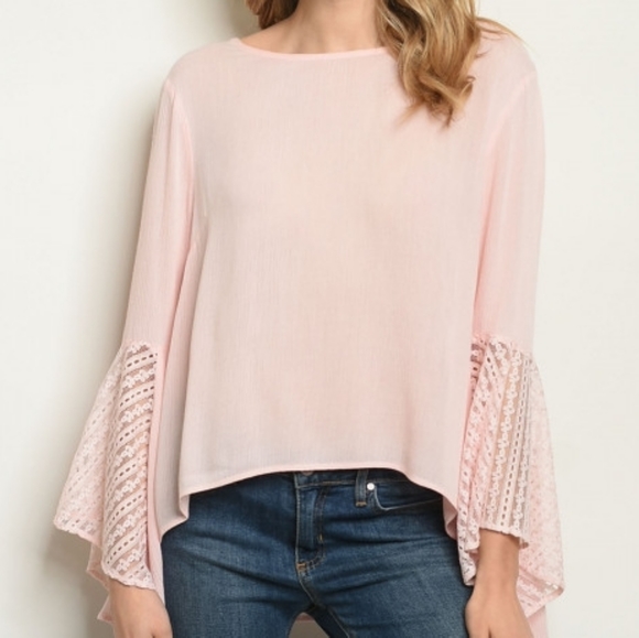 Long lace bell sleeve tunic blouse