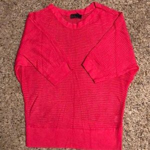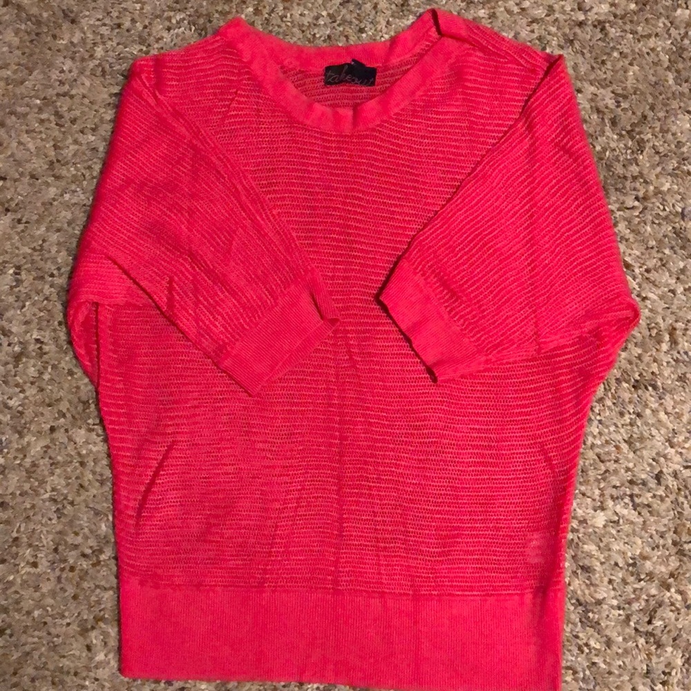 This is a super cute bright pink over top. The measurements laying flat: Armpit to armpit: 20” Shoulder to bottom hem: 23.5”