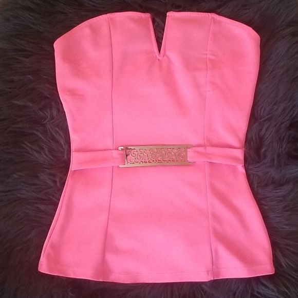 Like new super cute strapless top with gold detail! Great with jeans, or dress it up with some slacks, or a pencil skirt!