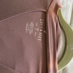 Short sleeve pink top. Extremely soft. Two discolored spots on the neck.