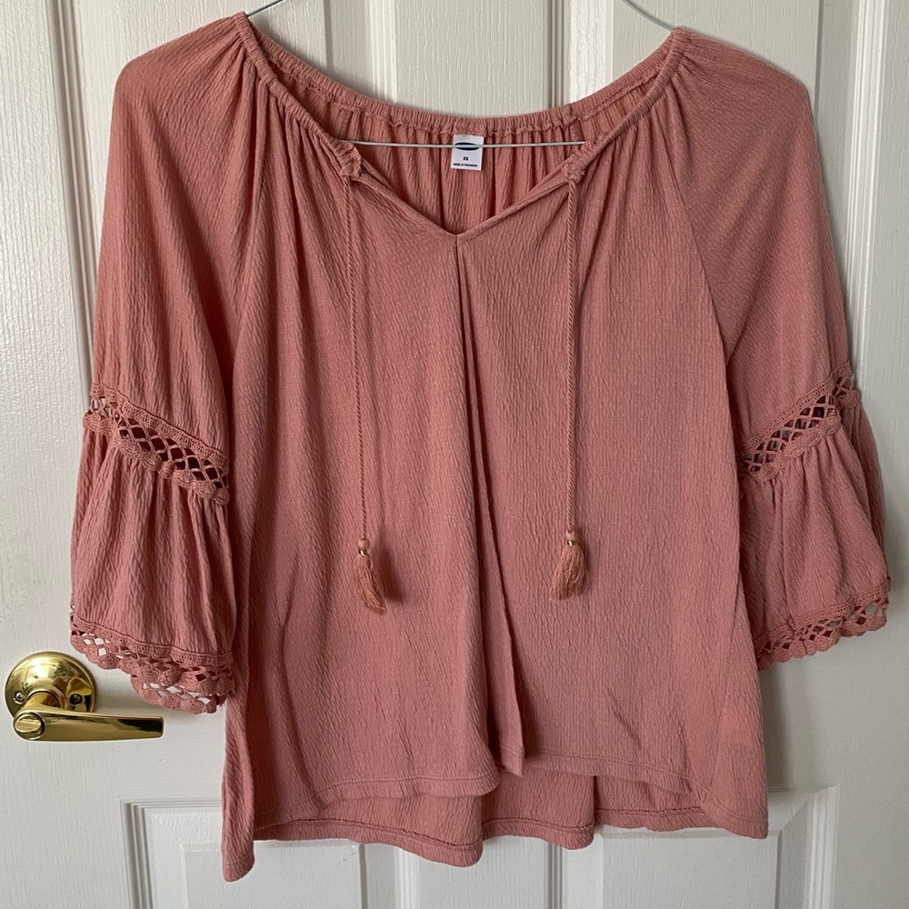 Cute and flowy summer top! Soft material, cute tassels, and fun design on the bell sleeves! Only worn a couple times and in excellent condition.