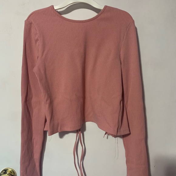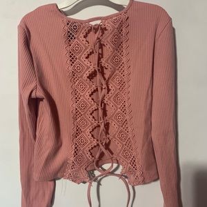 Forever21 pink ribbed top with criss cross back