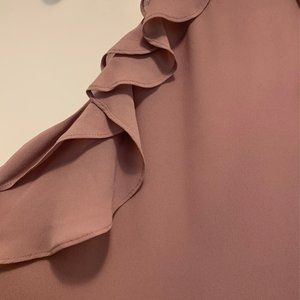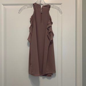 This solid pink top has a fun ruffle and a flattering racerback cut