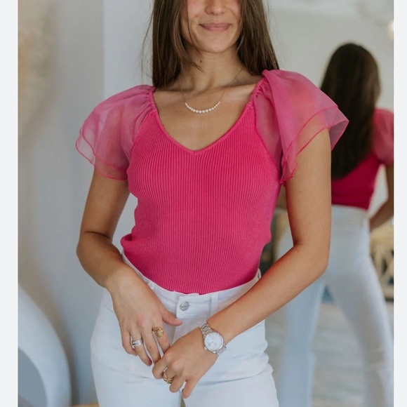 Pink top with fun sleeve detailing. Size small, only worn once.