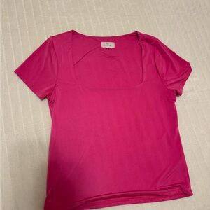 Hot pink and double lined shirt, slightly cropped but not really with high waisted pants. Worn only a couple of time. Square neck.