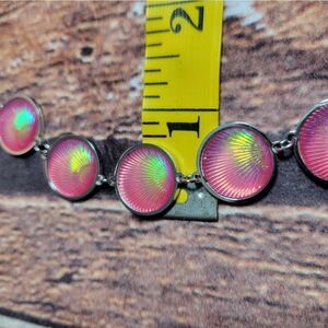 Simulated Pink Magic Color Topaz Seashell Charm Station Bracelet in Stainless Steel. 7.25 in - 9 in
