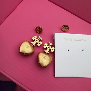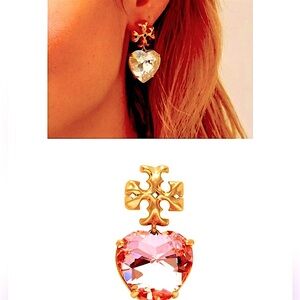 Pink 💖Tory Burch Crystal Heart Earrings Kira gold logo studs miller earring