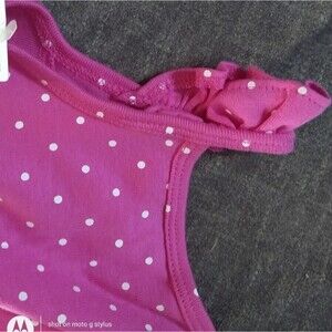 Your babies will love this one it's so soft and fresh, with a Polk a Dot touch and ruffles to it and two bows in the front.Front button/diaper closure Material 100% cotton