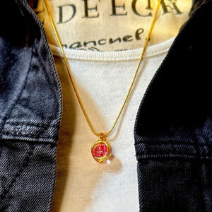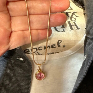 Pink Tourmaline /Indicolite/ sphere pendant gold necklace