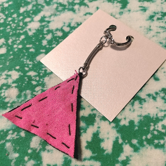 Pink triangle hand sewn to a real leather backing and finished with a keychain. Show your pride while reminding the world how far we've come. 🏳️🌈