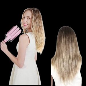Three barrel curling iron creates smooth, bouncy, attractive natural curls. 1 inch triple barrel curling iron is a game changer for hair, suitable for any hair type. Simply clamp down and release for instant, allowing you to experience the sweetest, bouncier waves. Made of ceramic and in the cutest pink colour-way, the 25mm 3 barrel curling wand.