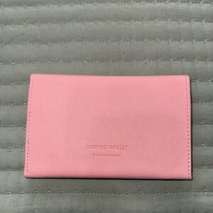 A Pink Tripping Wallet is a compact, stylish accessory designed for both everyday use and travel. Made with durable material, this wallet features multiple compartments. Its vibrant pink color adds a fun touch, while the slim design makes it easy to slip into a pocket or travel bag.