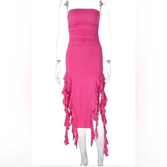 Tassel Trim Ruched Dress: Designed with midi length with different length ruffle frills on the asymmetrical hem,shows your thighs by a split way.Also you can raise your dress by the side ruching details to make the top more pleated feeling and bottom part more elegant and chic.