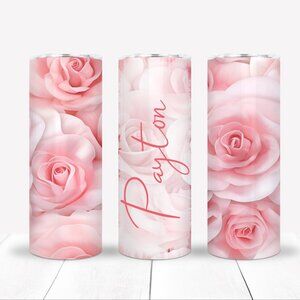 Pink Tumbler, Custom Name Romantic Floral Women Girls Mug, Sweet 16, Quincenera