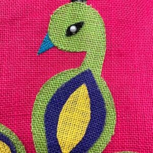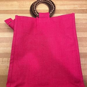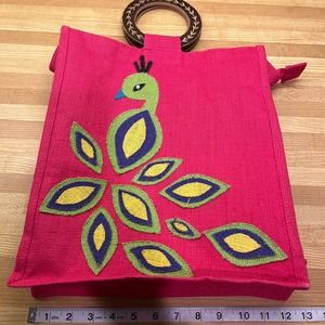 Pink Tweed Bird Applique Wood Handle Tote Zippered Top