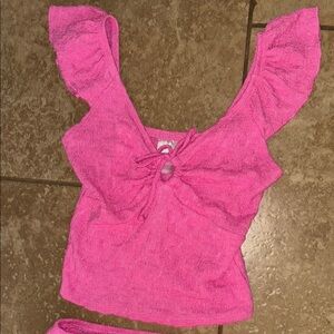 Pink Two-Piece Set with Ruffle Sleeves
