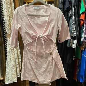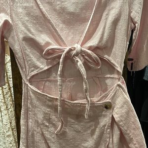 There’s a cut out in the middle of the romper, there’s no stretch. Super cute on.