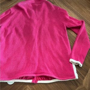 Pink Christmas sweater/cardigan. Some wear on front as pictured and on sleeve