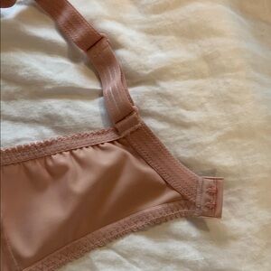 Pink Underwire Bra with Lace Trim and Adjustable Straps