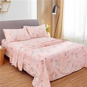 Pink Unicorn Kids Sheet Set Twin Size, 3 Piece Girls Rainbow Printed