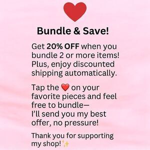 Tap the ❤️ on your favorite items and bundle 2 or more to unlock an automatic 20% OFF + discounted shipping! 🛍️