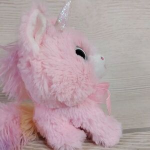 Pink Unicorn Plush Toy with Glitter Horn & Pastel Rainbow Tail