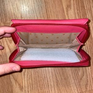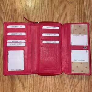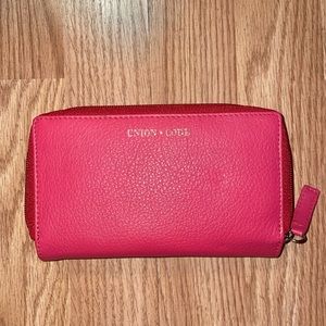 Pink Genuine Leather. Never used!! Very spacious inside.