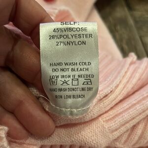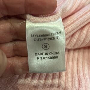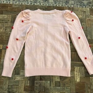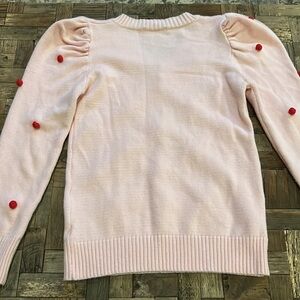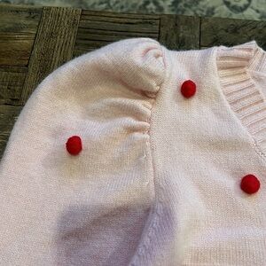 Cotton Candy Pink Sweater with Red Pom Poms. V neck. Cute puff sleeves. Ribbing at neck, sleeves and waist. Excellent condition. So soft!! Size Small